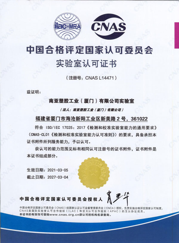 臺塑南亞擁有先進的生產(chǎn)加工設(shè)備以及實驗室設(shè)備,并被國家塑料質(zhì)量檢測中心認(rèn)可。